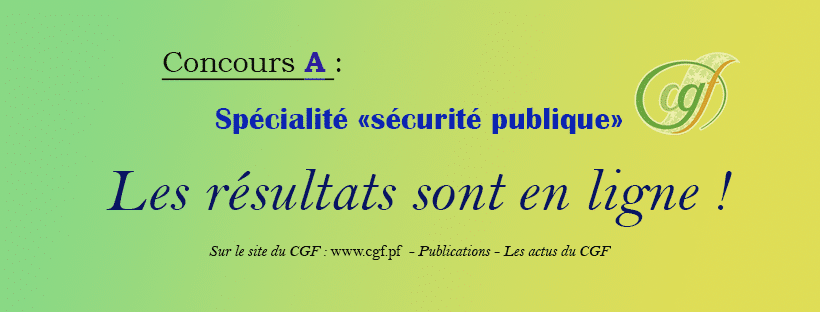 Suite à la réunion d’admission qui s’est tenue ce jour, les membres du jury ont délibéré et arrêté les listes des candidats admis aux concours de la spécialité « Sécurité publique » (catégorie A) – session 2025 : Les listes d’aptitude sont disponibles ci-dessous : Les candidats sont invités à consulter leur relevé de notes dans leur espace sécurisé en ligne. Le CGF tient à remercier les membres des jurys, les examinateurs, concepteurs et correcteurs pour leur disponibilité et leur implication, ainsi que l’ensemble des agents mobilisés pour le bon déroulement de cette session. Le Président du jury et le Président du CGF adressent leurs félicitations à l’ensemble des candidats admis et leur souhaitent pleine réussite pour la suite de leur parcours professionnel. Le service en charge des concours et examens professionnels du CGF reste disponible pour toute information complémentaire.