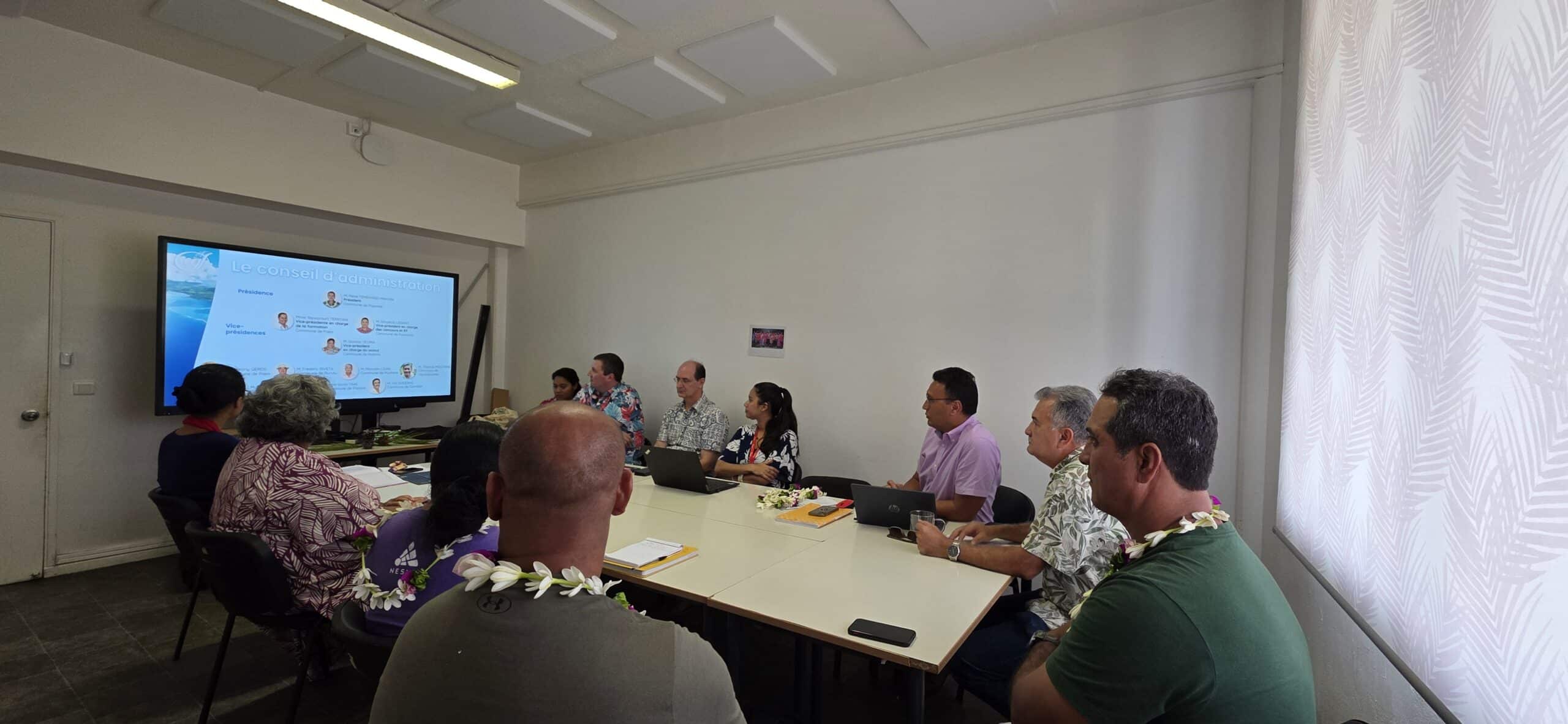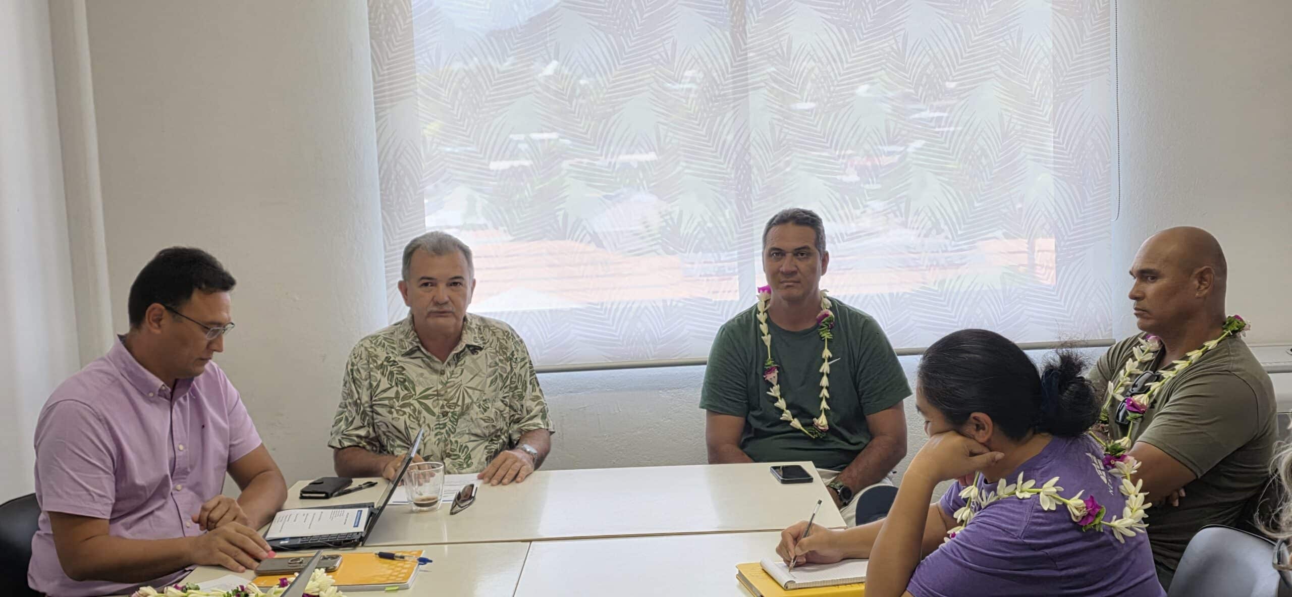 Le président du Centre de gestion et de formation (CGF), René TEMEHARO, accompagné de ses directeurs, a reçu, ce mardi, une délégation de la commune de Takaroa composée du Tavana Reynold ALVAREZ, du maire délégué Georges TEMANAHA ainsi que de la secrétaire générale de la commune, Ateni Rousseau.